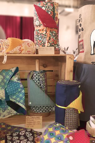 Nolwenn Hernio propose ses créations du snood au coussin de méditation en passant par une large gamme d'accessoires zéro-déchet comme l'essuie-tout, l'éponge ou la charlotte à plat. À l'écoute de vos projets, Nolwenn Hernio peut aussi réaliser vos envies sur commande.